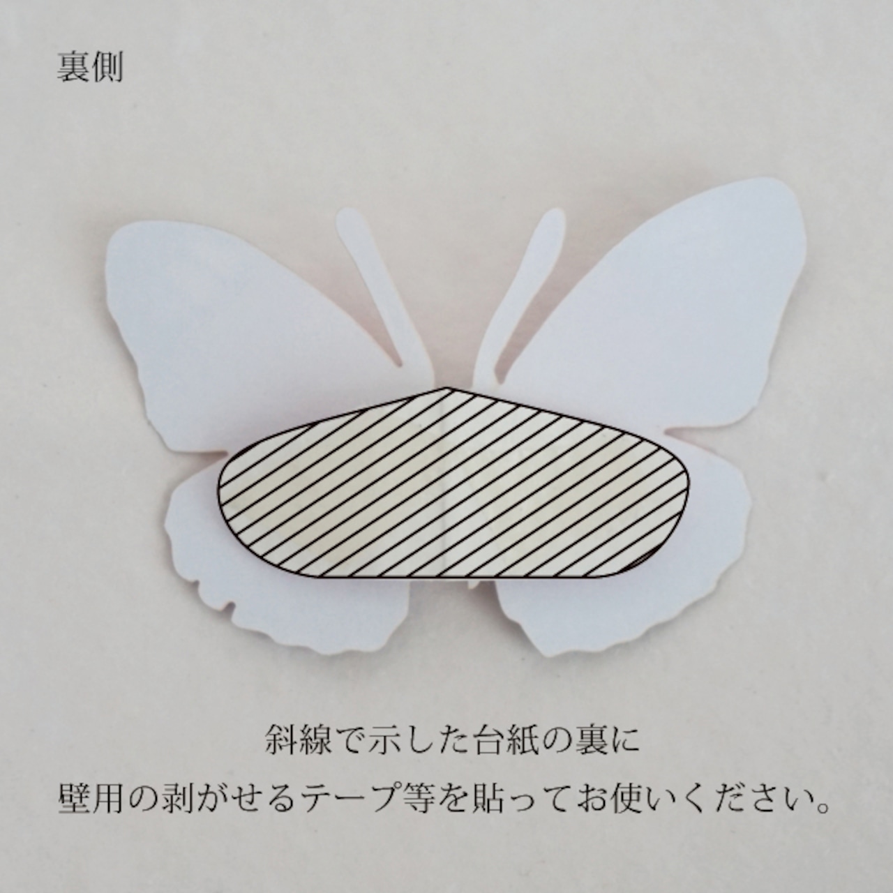 蝶の台紙の裏面に壁用の両面テープ等を貼った後、